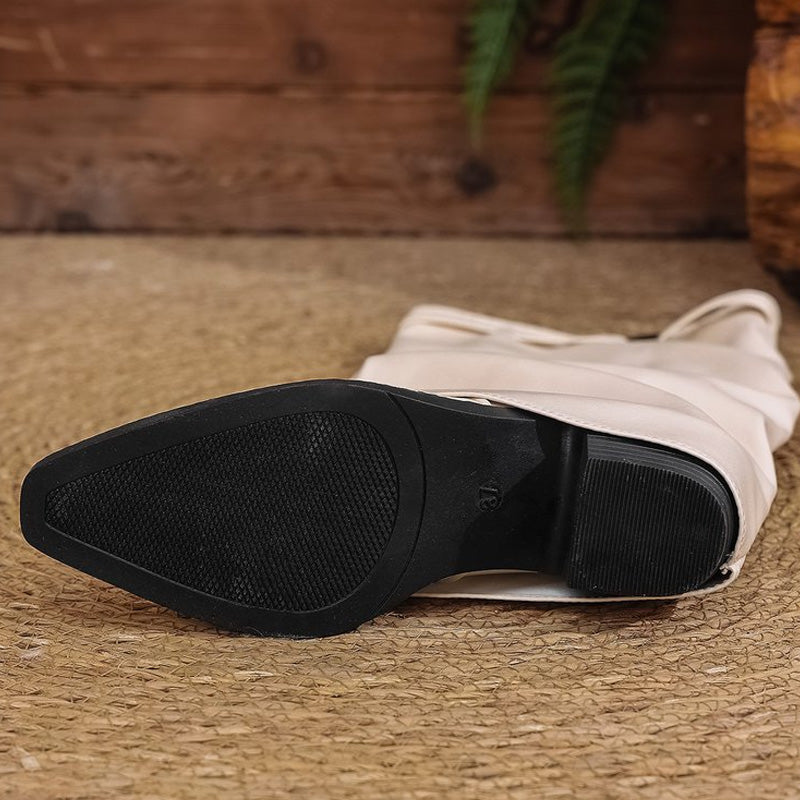 Adoptez un style chic et facile à porter avec ces bottes montantes à tige souple froissée et talon épais.