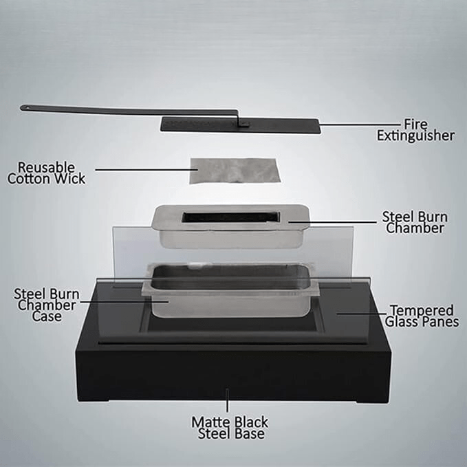 - Pare-vent en verre pour limiter les courants d’air et sécuriser la flamme