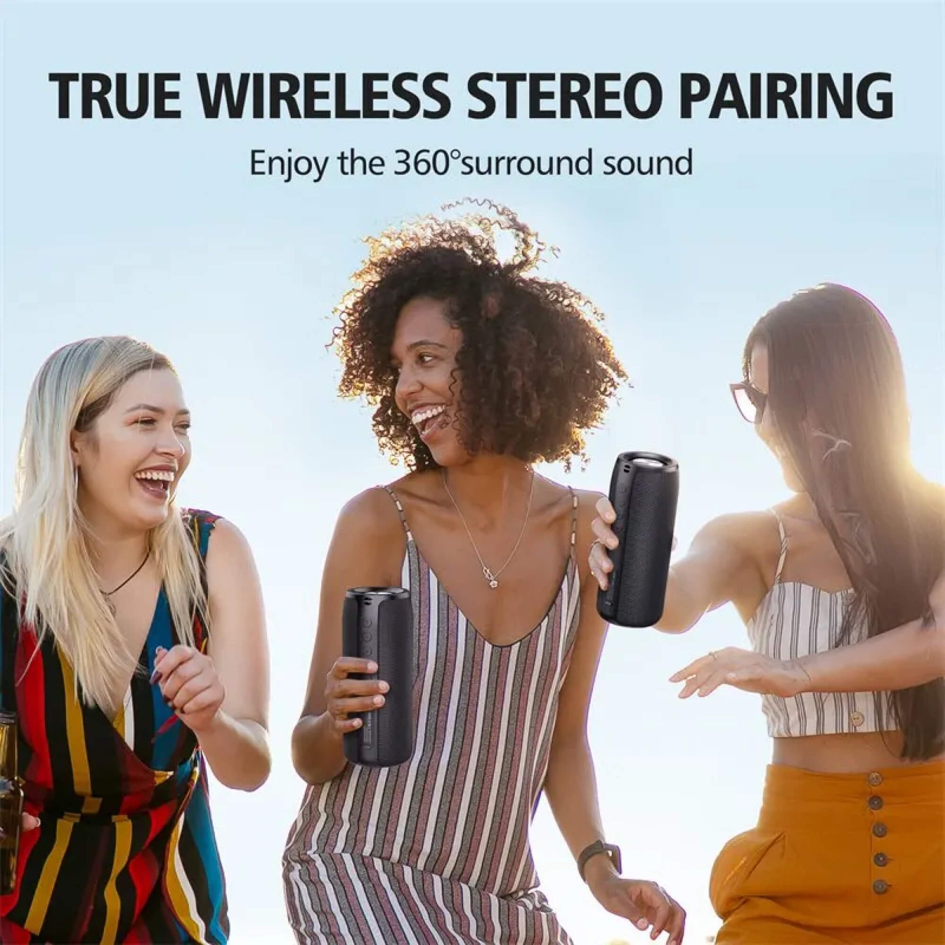 - Étanche & nomade : conçue pour résister aux éclaboussures et à la vie en plein air — idéale comme enceinte portable pour piscine, terrasse, camping, sport et voyage.