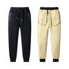 Pantalon de jogging noir conçu pour rester au chaud en saison froide, avec doublure intérieure type polaire et tissu matelassé. Sa taille élastique avec cordon de serrage s’ajuste facilement, tandis que les poches zippées sécurisent téléphone et petits objets au quotidien.