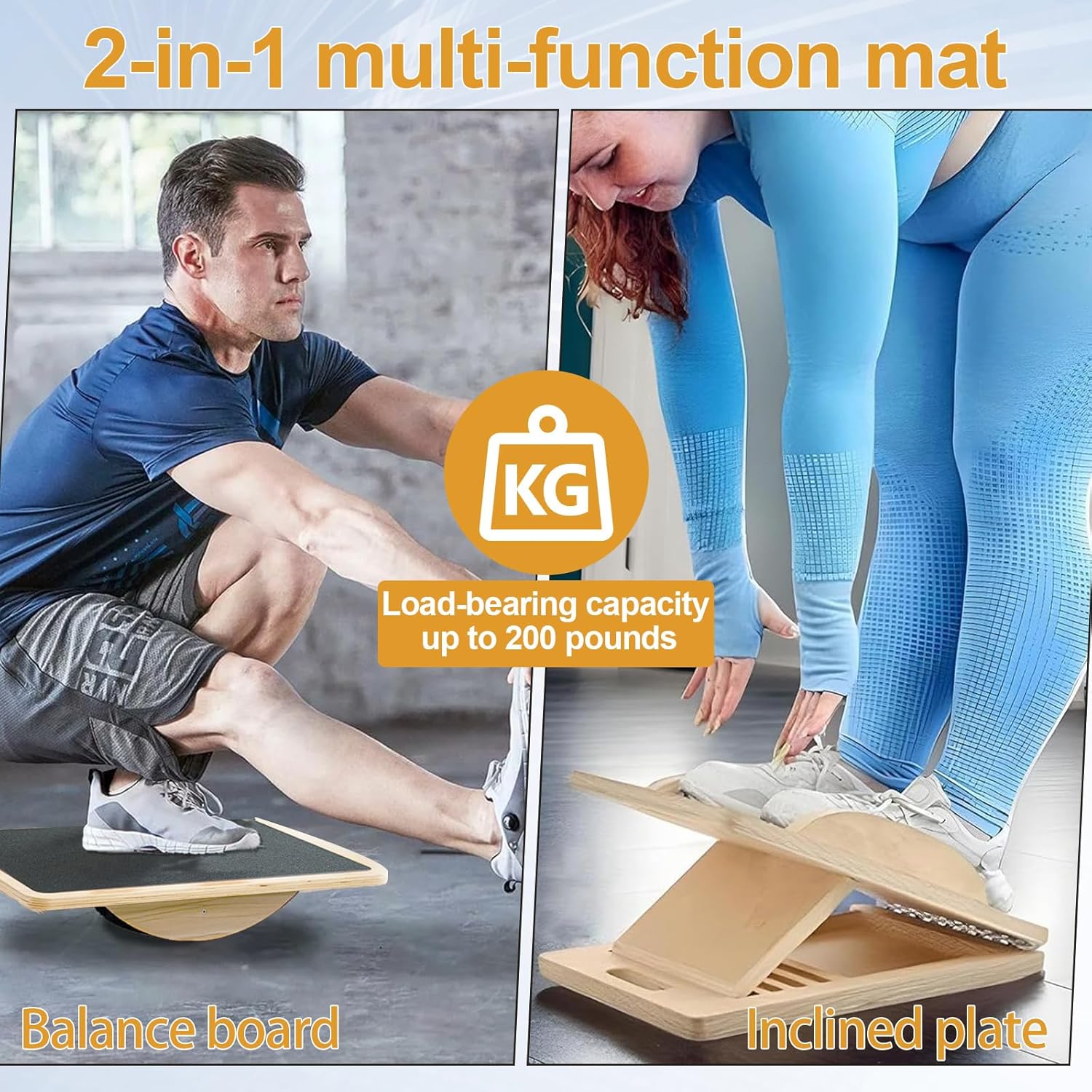 Cette planche d’étirement 3-en-1 en bois combine planche inclinée, plateforme de stretching et balance board pour travailler mobilité, posture et stabilité.