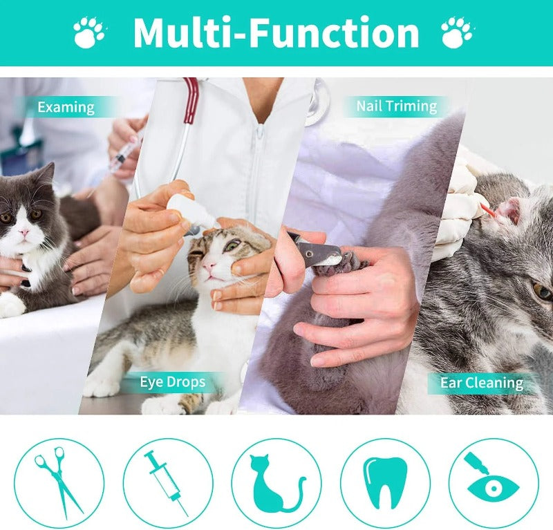 - Multi-usages, sécurité renforcée : idéal pour bain, coupe-griffes, soins, médicaments et manipulations délicates, tout en réduisant les risques de griffures.
